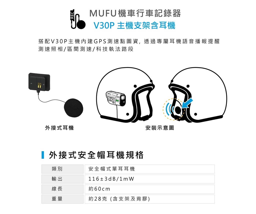 ◉如您已經有自己的藍芽耳機安全帽內無法再多裝一個耳機,可評估此V30P主機支架不含耳機配件