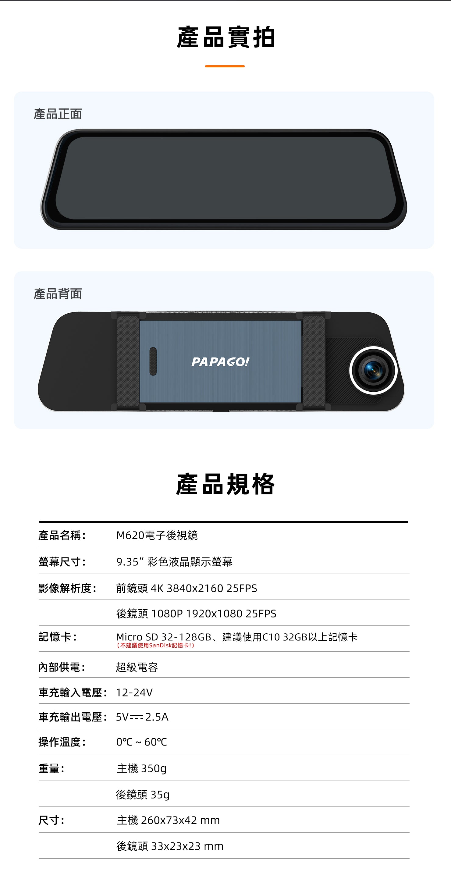 PAPAGO M620【贈128G+拭鏡布】 4K+1K電子後視鏡 區間測速 科技執法 TS碼流 行車安全輔助系統